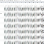 1. 엑셀을 이용하여 QUERY 만들기 넣을 데이터 목록을 정렬하여 한쪽에 입력해 놓는다. 그리고 INSERT문을 작성한다. EX ) B3에 데이터를 넣었으니 F3에 INSERT문을 작성해놓는게 편리하다. ="INSERT INTO DIRECTOR( DIRECTOR_ID, DIRECTOR_NAME) VALUES ( DIRECTOR_ID_SEQ.NEXTVAL, '" & B3 & "');" INSERT 앞에는 쌍따옴표 '" & B3 & "' 부분에서는 홑따옴표 쌍따옴표 & B3 & 쌍따옴표 홑따옴표 순서이다. INSERT INTO DIRECTOR( DIRECTOR_ID, DIRECTOR_NAME) VALUES ( DIRECTOR_ID_SEQ.NEXTVAL, '" & 까지 입력한 후 B3를 클릭하고 나머지를 입..